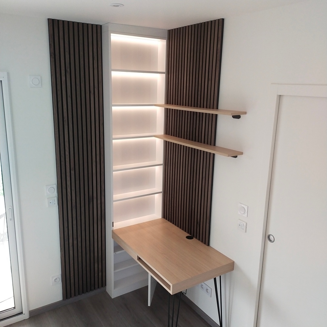 Cet agencement a été installé dans une chambre d’amis pour permettre à mes clients de télétravailler dans de bonnes conditions.